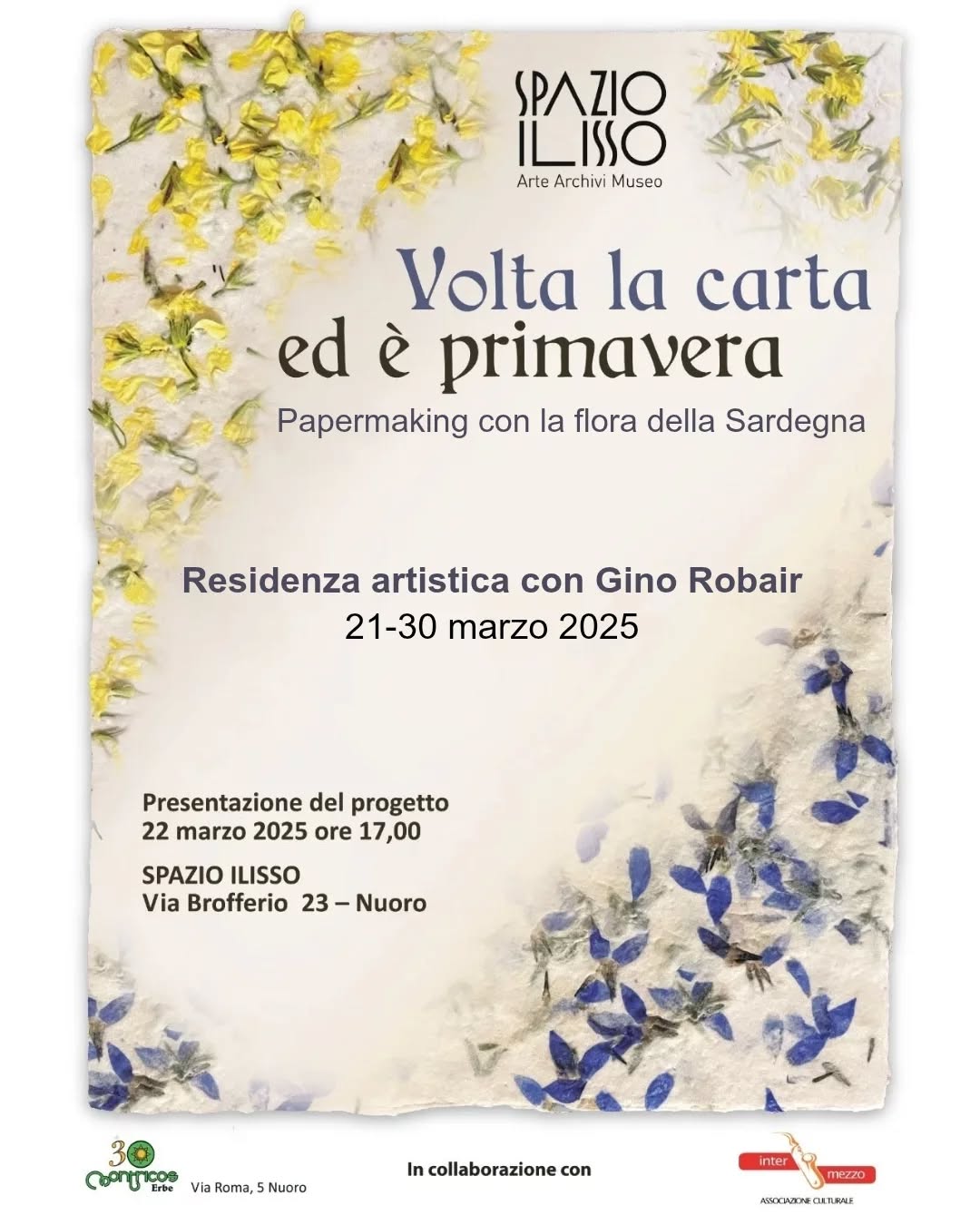 Da venerdì 21 a domenica 30 marzo, Spazio Ilisso è lieta di ospitare un progetto di residenza artistica con il compositore, artista e performer statunitense Gino Robair dedicato alla fabbricazione della carta con la flora della Sardegna in collaborazione con l’Erboristeria Montricos e l’Associazione Culturale l’Intermezzo.
