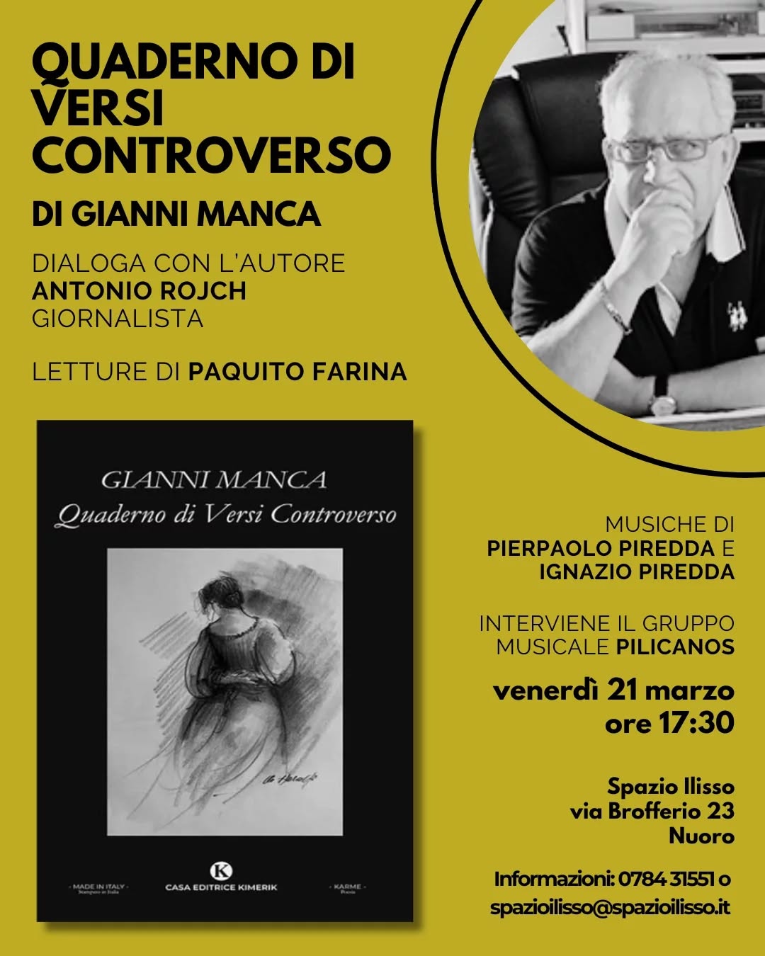 Venerdì 21 marzo alle 17:30 Spazio Ilisso ospita la presentazione del nuovo libro di Gianni Manca "Quaderno di Versi Controverso".