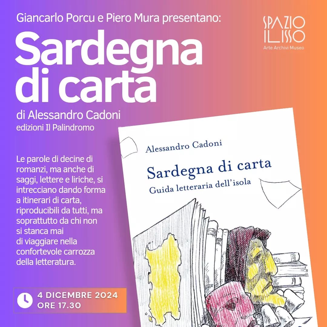 Mercoledì 4 dicembre, alle ore 17.30, Giancarlo Porcu e Piero Mura presentano a Spazio Ilisso il libro "Sardegna di carta" di Alessandro Cadoni, edito da Il Palindromo.